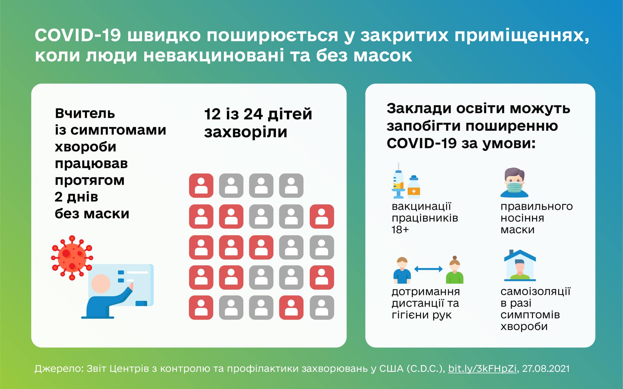 Провести 2021/2022 навчальний рік безпечно допоможе вакцинація від COVID-19 та дотримання профілактичних заходів. Адже школа може стати епіцентром поширення коронавірусу.